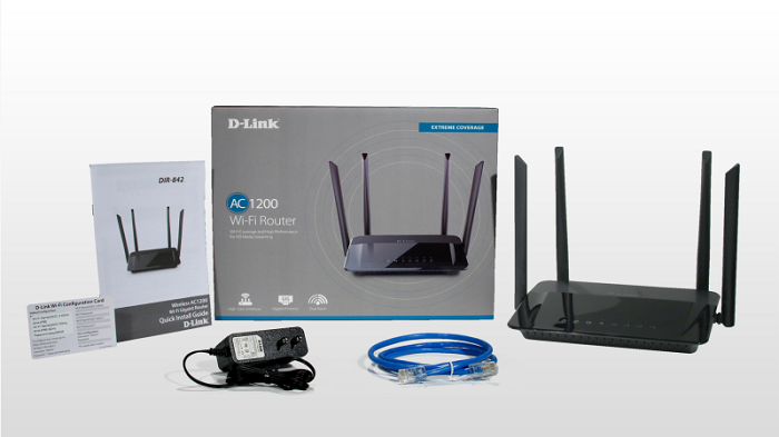 DLINK DIR-842 Thiết bị phát Wifi không dây dành cho giải trí đa phương tiện, băng tần kép chuẩn AC 1200 (2.4Ghz:300Mbps+ 5GHz:867Mbps), 04 ăng ten băng tần kép gắnngoài 5dBi giúp phủ sóng xa hơn, xem phim HD, game online, công việc độ nhạy cao cùng lúc cho nhiều thiết bị không dây; IPV6, Guestzone, QRS Mobile, 4port x10/100/1000Mbps LAN, 1port x10/100/1000Mbps WAN.